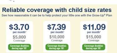 • One time premium payment of $125 per application (purchase up to three certificates per child. Sets of twins and triplets are covered with just one application and payment of $125).